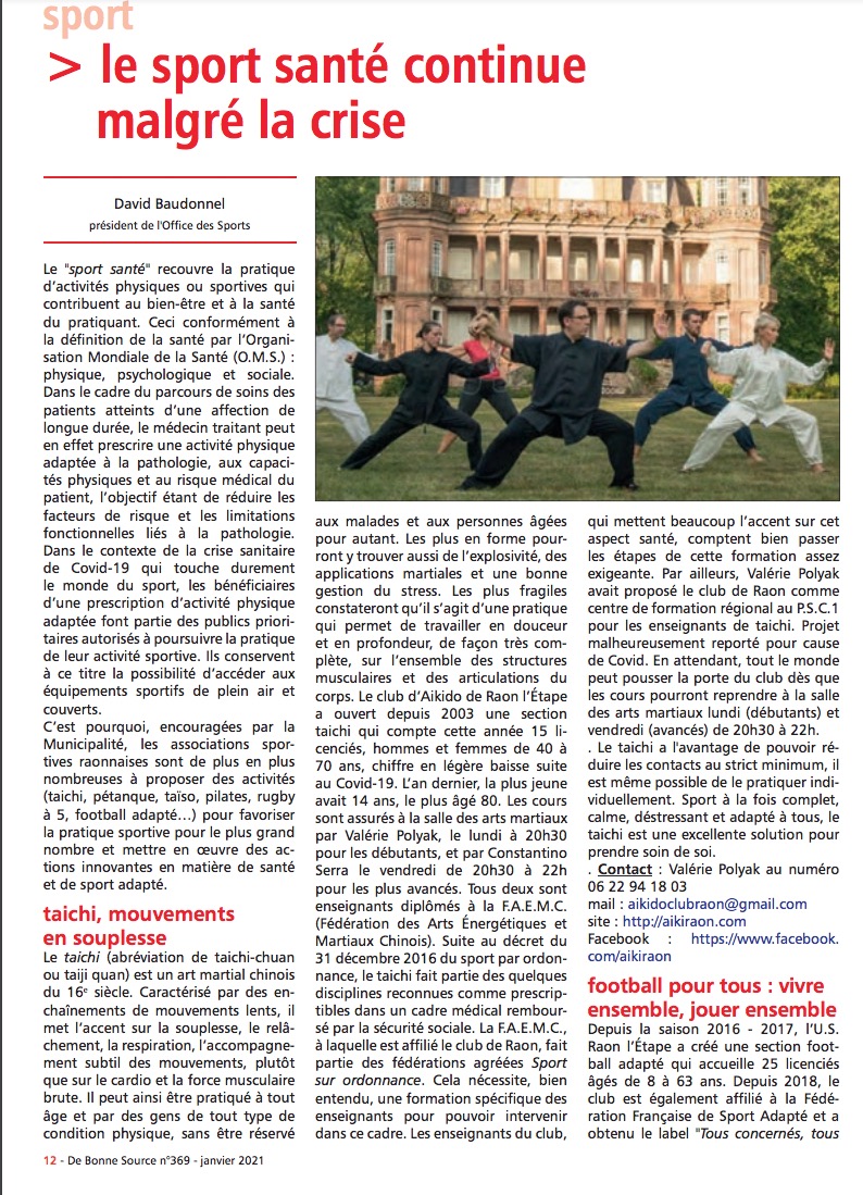 Le sport santé continue malgré la crise - De Bonne Source - Janvier 2020