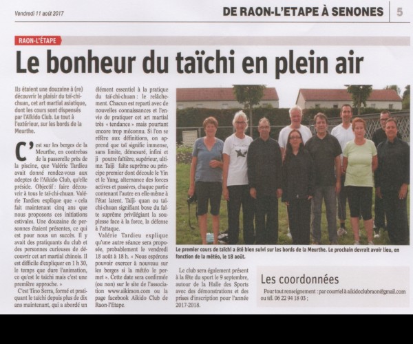 Nous espérons vous voir aussi nombreux à cette ultime séance estivale le 25 aoüt prochain. Si la météo est clémente, ce sera au même endroit. La solution de repli sera le dojo. Les dernières précisions sur ce nouveau rendez-vous seront affichées sur la page facebook de l'association "aïkido club de Raon l'Etape". Abonnez-vous à notre page...